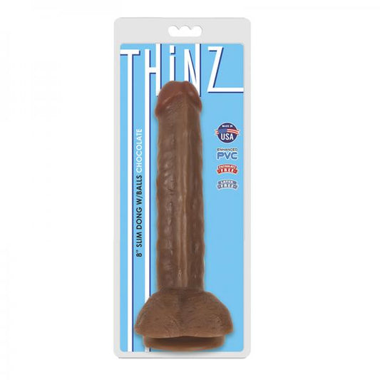 Thinz 8 inches Slim Dong with Balls Chocolate Brown